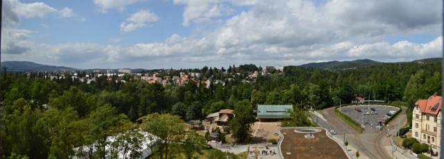 Lidové sady navštěvujeme v rámci naší letní rodinné dovolené v Krkonoších. Jeden den děláme výlet do Liberce a hned po projití místní ZOO jdeme právě na tuto vyhlídkovou věž, která stojí v jejím sousedství. Vstupujeme tedy do Lidových sadů, což je vlastně takový kulturní dům pro konání společenských akcí, a dole ve vestibulu si kupujeme lístky na věž a samozřejmě také turistickou vizitku a pohled. Pak už jen stoupáme po schodištích až na vrcholek věže. V jejím vrcholku je pak vyhlídková plošina s okénky na každou stranu. Bohužel jsou okénka zavřená a nejde tak fotit jinak než přes sklo. Na druhou stranu zase tady nefouká. Shlížíme tedy na všechny strany a vidíme vcelku pěkně ještědský hřeben i s vysílačem, takřka celý Liberec rozprostírající se pod námi a samozřejme taky právě navštívenou zoologickou zahradu. I počasí se dnes umoudřilo a po dopoledních deštích je teď obloha již pěkně polojasná a i výhled je tedy uspokojivý. To už ale děti jdou rychle zase dolů, protože je ještě čeká návštěva v místním zábavním centru Babylon.